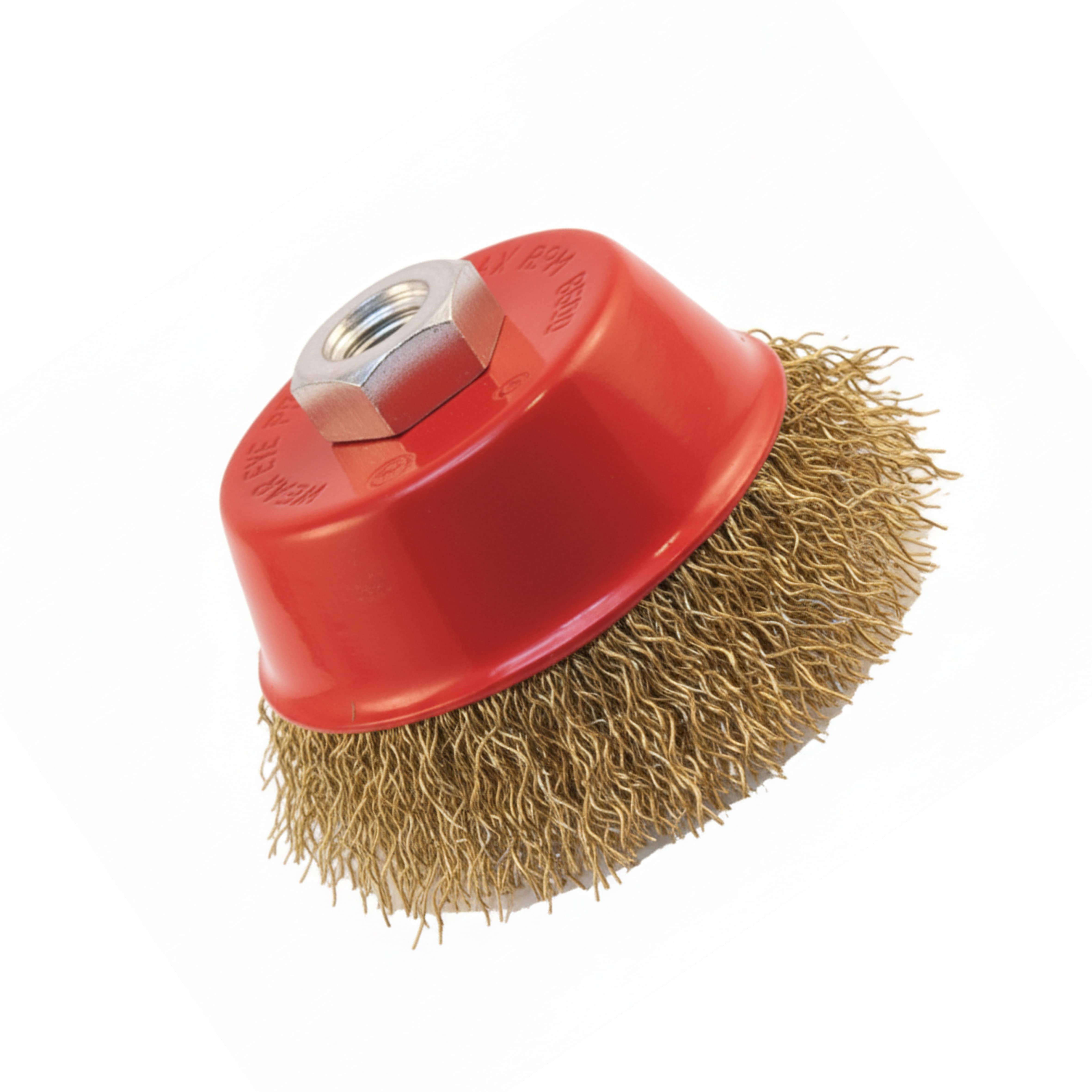 Die Topf-Drahtbürste Ø 75 mm gewellt ist ein vielseitiges Werkzeug für den Winkelschleifer mit M14 Aufnahme. Durch den gewellten, vermessingten Draht bietet sie eine hervorragende Kombination aus Flexibilität und Reinigungsleistung – ideal zum Entrosten, Reinigen, Entgraten und Entfernen von Beschichtungen.